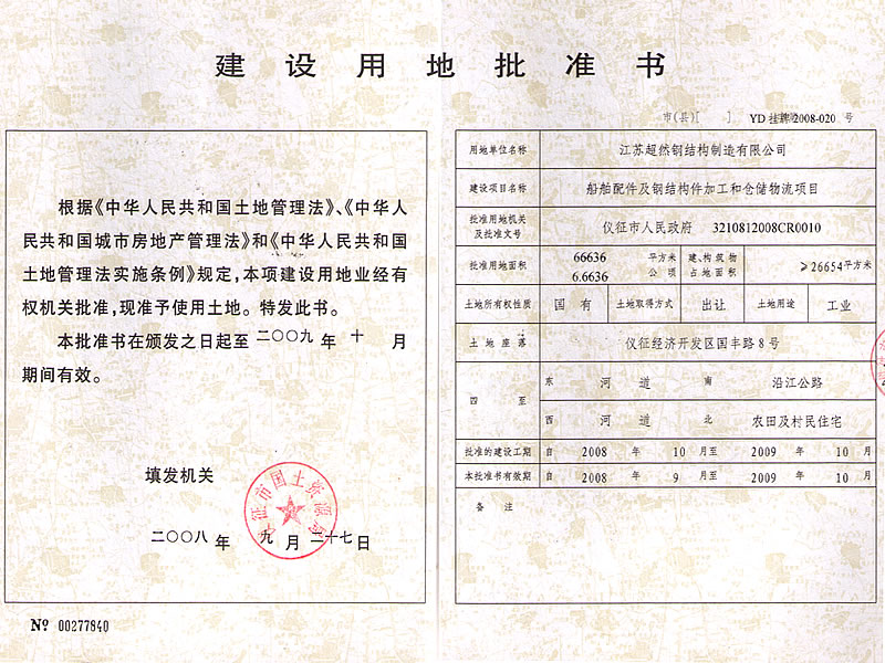 建设用地批准书